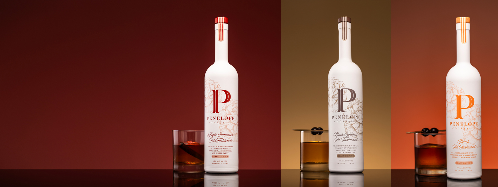 The Penelope Apple Cinnamon Old Fashioned is made with straight bourbon and rye whiskey, apple cinnamon bitters, and simple syrup.